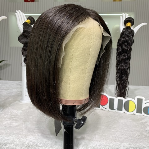 Peluca brasileña Remy Bob Peluca de cabello humano crudo de 14 pulgadas Peluca con malla frontal Durable dibujado Pre-blanqueado Natural en busca de mujeres negras
